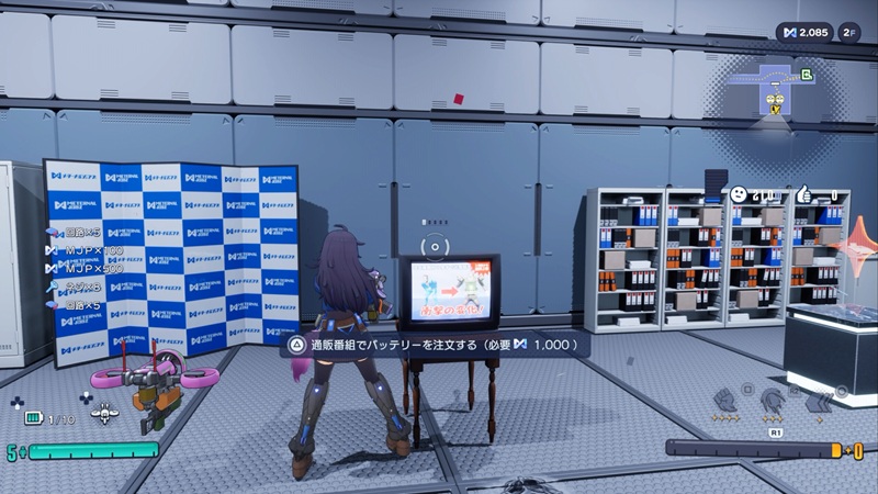 敵がおらずアイテム箱が置いてある部屋のテレビを調べるとバッテリーを購入することが出来ます。